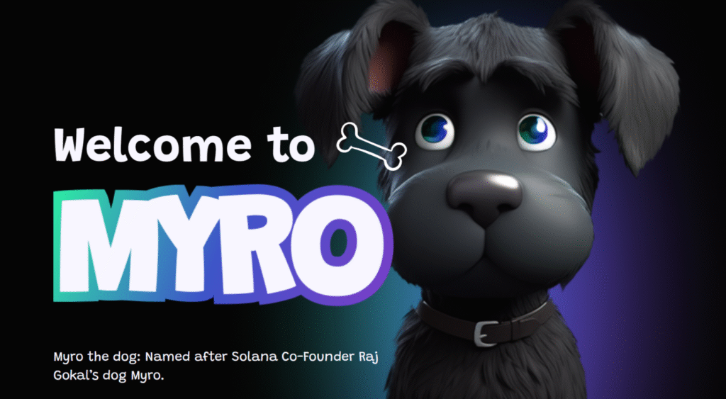 It’s no surprise that many meme coins draw inspiration from celebrity pets — and this trend continues with Solana co-founder Raj Gokal’s beloved dog. Myro is the charming canine-themed meme coin born from that inspiration, created to meet the growing demand for dog-centric tokens within the Solana ecosystem.